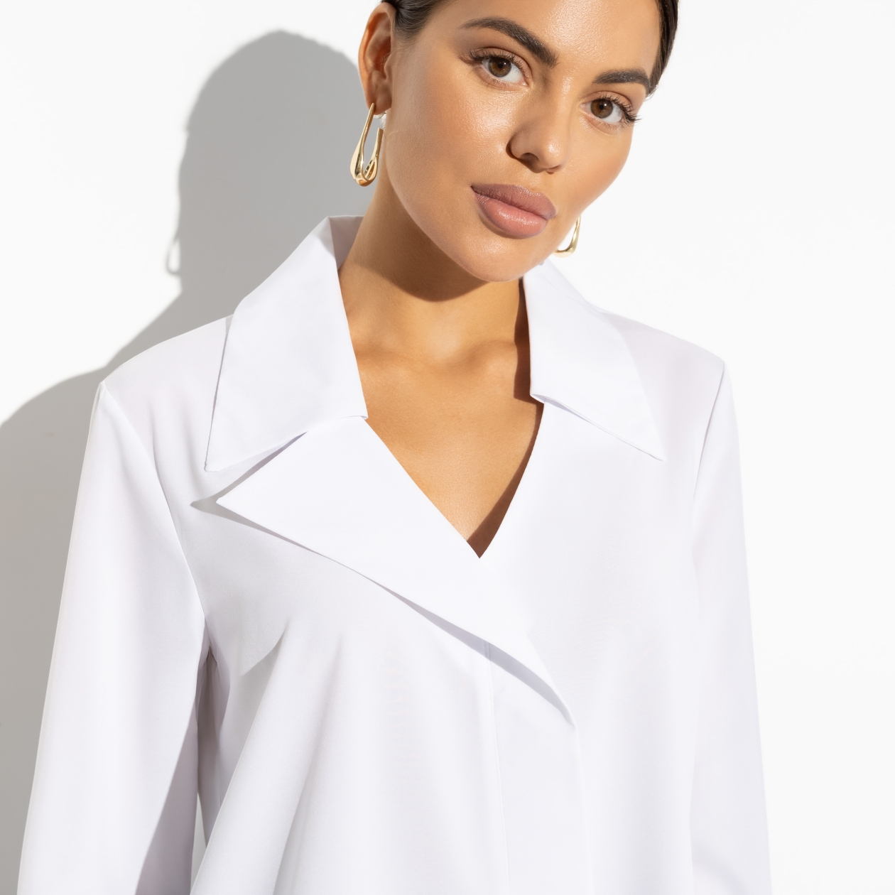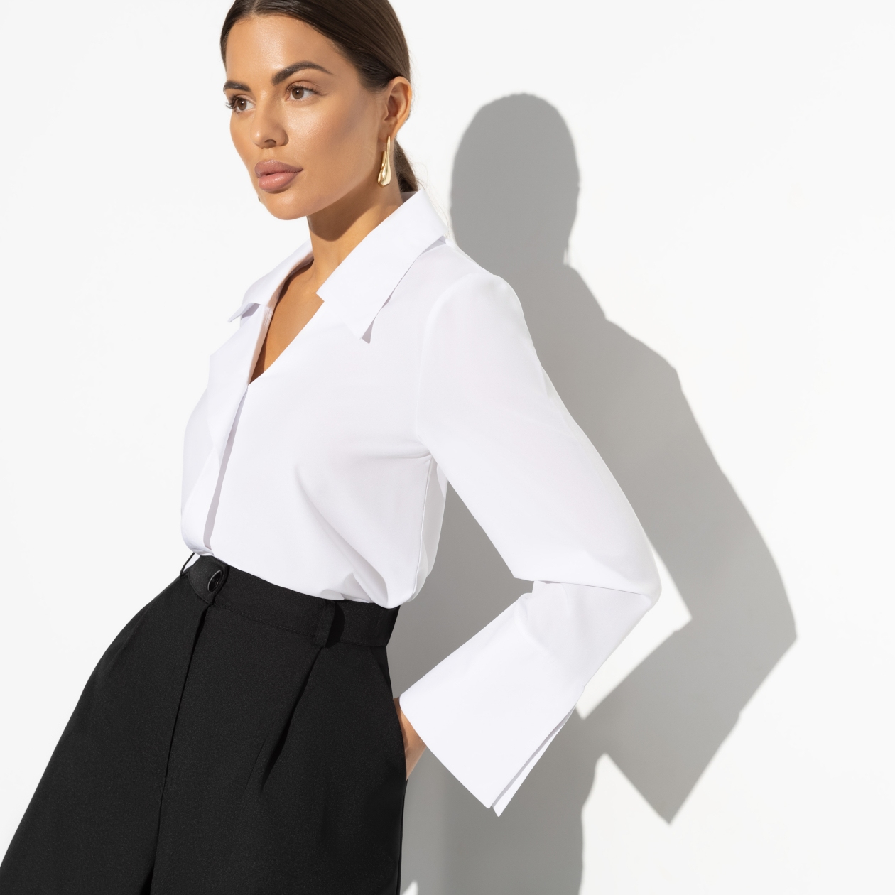 Как говорили старожилы Уолл-стрит, босс не тот, кто пришел на работу в белой рубашке, а тот, у кого она осталась белой после бизнес-ланча. Амбассадоры CHARUTTI отличаются аккуратностью, правда же?! Рубашка в классическом стиле. Имитация линии пуговиц. Слегка расклешенный манжет с разрезами. Свободный крой, хорошо смотрится на любом типе фигуры.