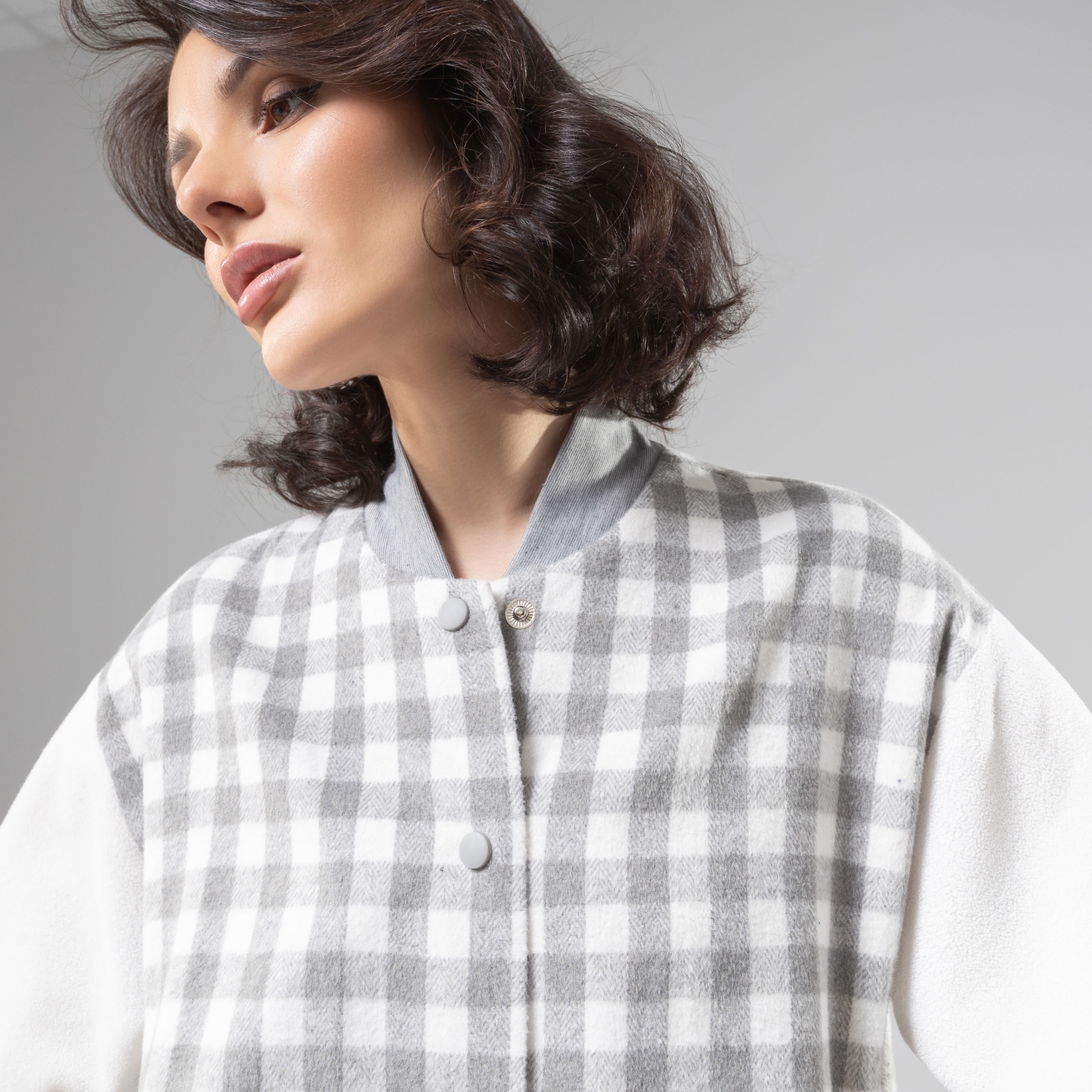 Бомбер «Движение вперед» – это настоящая находка для тех, кто ищет женский бомбер больших размеров, который сможет сочетать в себе стиль, комфорт и элегантность. Его свободный крой и объемный силуэт позволяют чувствовать себя уверенно и свободно, не жертвуя при этом эстетикой. Изготовленный из нескольких видов тканей – жаккард, трикотаж купра, атлас и трикотаж нейлон-рома – этот бомбер женский оверсайз становится воплощением изысканности. Вы будете привлекать внимание в любой ситуации, будь то прогулка по осеннему парку или встреча с друзьями в уютном кафе. Светлая цветовая гамма и утонченный принт идеально подойдут для создания притягательного образа. Покупка бомбера оптом – это разумное решение для тех, кто стремится обновить гардероб или предложить своим клиентам что-то уникальное. Специалисты по стилю не зря рекомендуют этот бомбер как идеальный Casual для элегантных. Он не только обеспечит вам комфорт, но и подарит уверенность в своем безупречном внешнем виде. Куртка бомбер женская с карманами и однотонным подкладом станет основой гардероба, легко сочетаясь с разнообразными элементами одежды. Вопреки модным трендам, этот бомбер остается вне времени, благодаря своему безупречному крою и качеству материалов. Бомбер женский осенний «Движение вперед» – это не просто одежда, это стиль жизни. Он создан для тех, кто ценит индивидуальность и предпочитает выделяться из толпы. Опт на эту модель позволит не только выгодно приобрести её, но и предоставить вам возможность стать обладателем вещи, которая будет радовать вас и окружающих долгие годы. Смелый дизайн, исключительное качество и комфорт – идеальные причины для выбора именно этого бомбера. Ощутите свободу движения и уверенность в каждом шаге вместе с бомбером CHARUTTI из коллекции PREMIUM.
