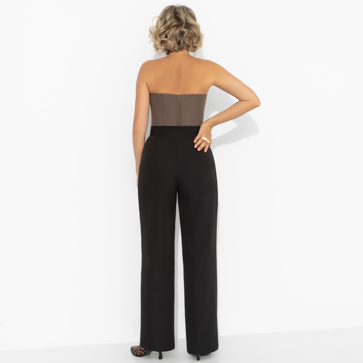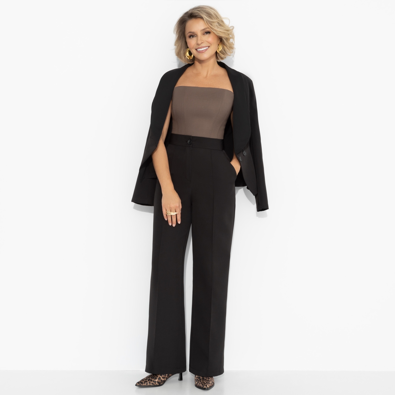 Если бы у Сабрины Карпентер был деловой ужин в мегаполисе – она выбрала бы такой комплект! Стиль и харизма в каждом жесте, соблазнительная простота и уверенность в себе. Прямые брюки с высокой посадкой, идеальный силуэт. Мягкая, но плотная ткань, глубокий чёрный цвет, есть карманы. Брюки универсальны – для работы, коктейлей и вечеров, когда хочется выйти на сцену (или, как минимум, устроить ее).