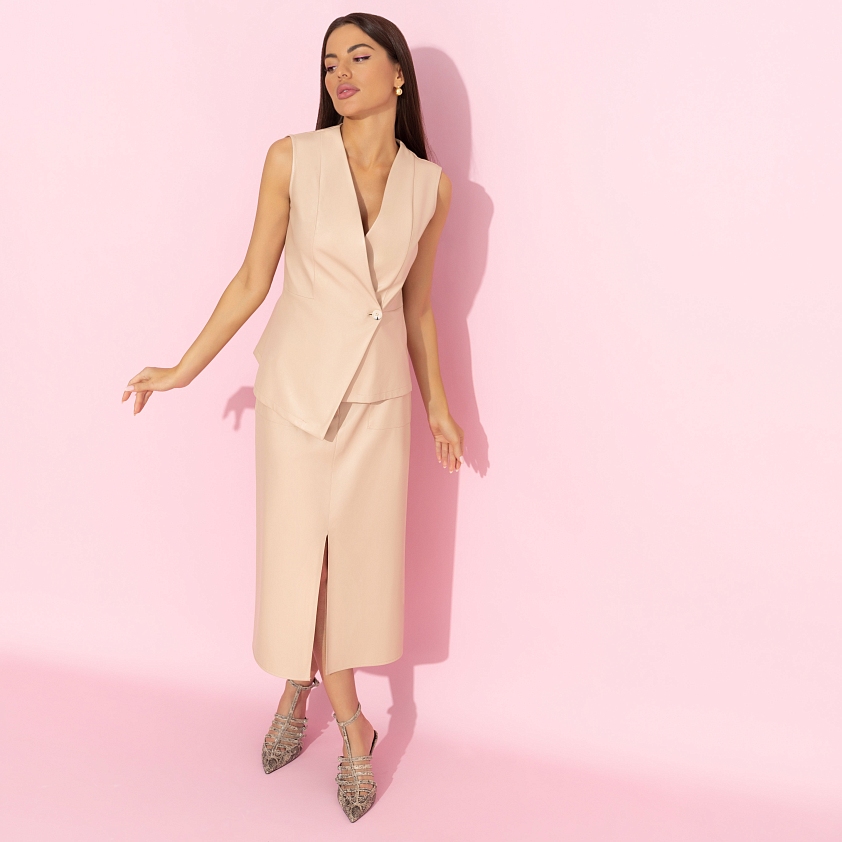Жилеты – универсальный элемент для создания стильных дуэтов с юбками и брюками. С рукавами и без, прямые и асимметричные, строгие и с плавными складками, полностью застегивающиеся и на одной пуговице – каждая модель отличается продуманным дизайном, позволяя составлять эффектные образы.