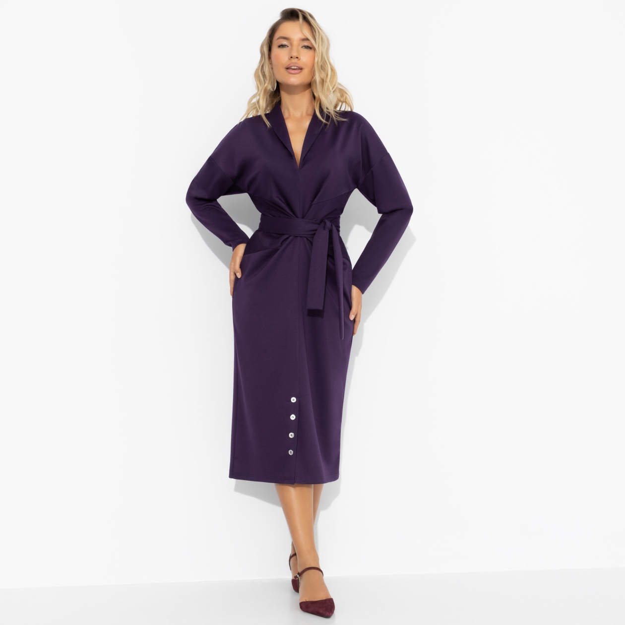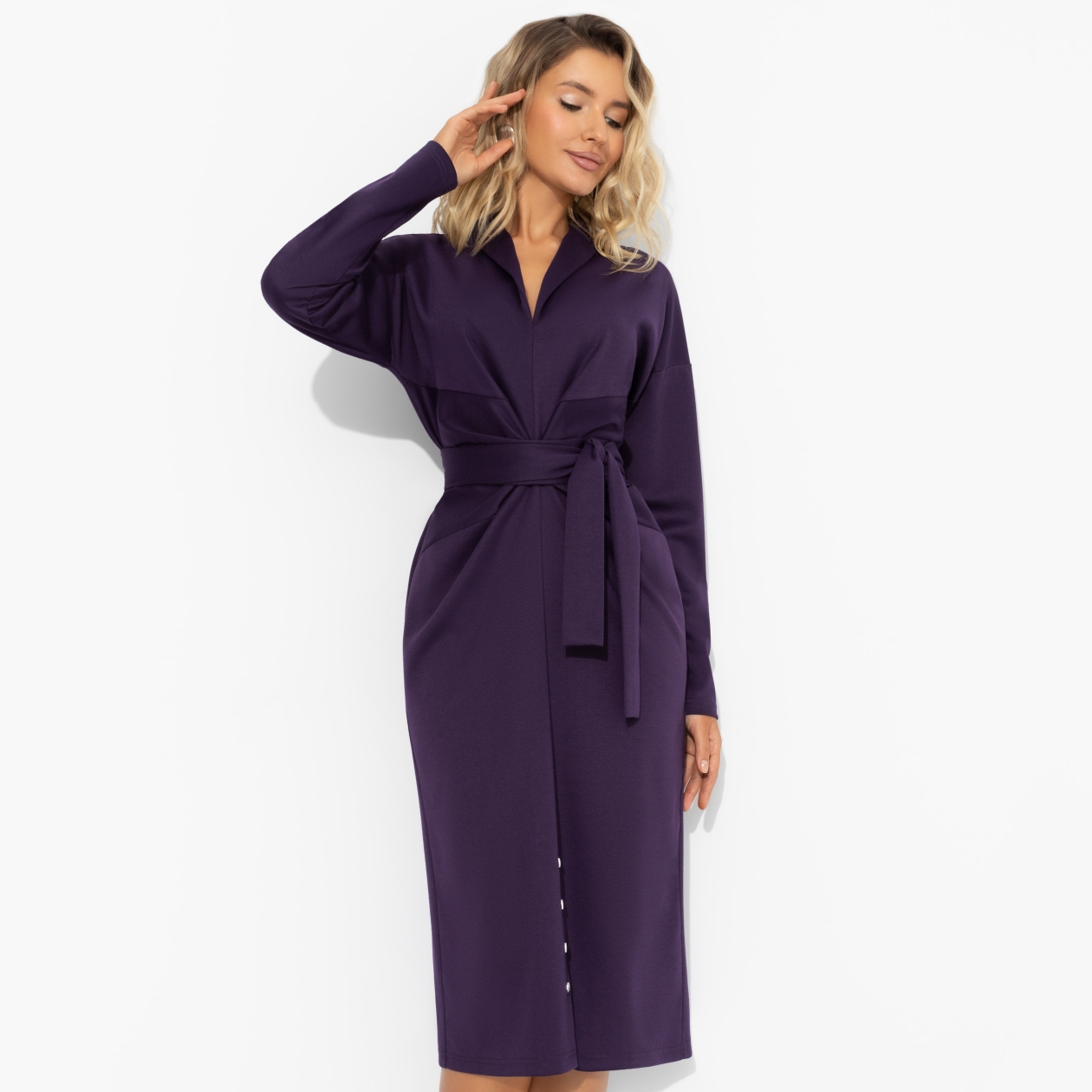 Платье ЧАРУТТИ станет ярким свидетелем его первого признания в любви. Взгляд на тебя изменится навсегда. В нем запечатлеется немое восхищение. Платье можно сохранить как семейную реликвию и рассказывать эту историю потом вашим детям. Платье с лацканами в длине миди приталенного силуэта. Есть пояс в тон основного материала в комплекте. Спущенная линия плеча. Декоративная сборка по центру изделия. Пуговицы внизу платья как декор.