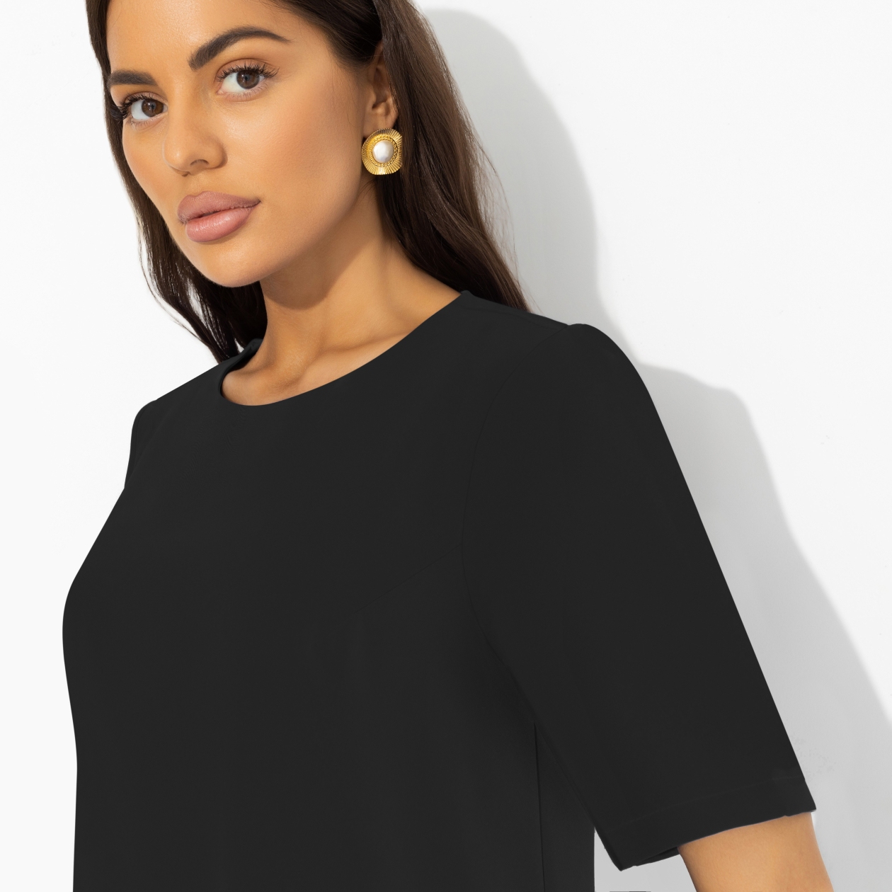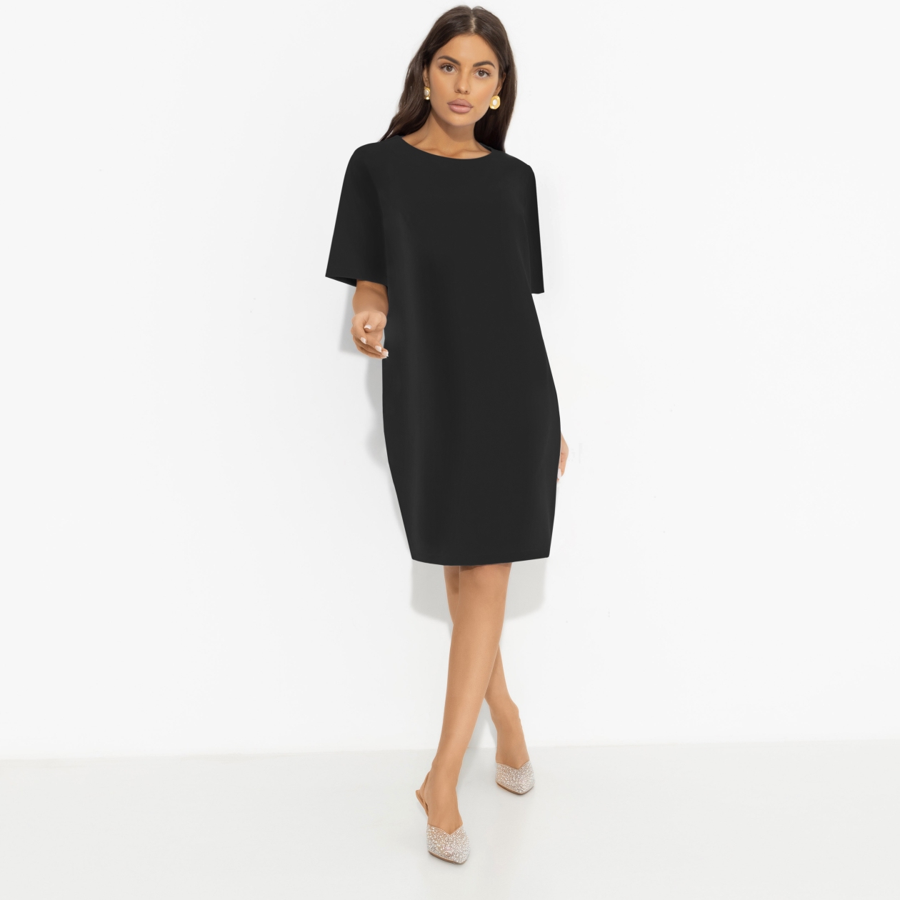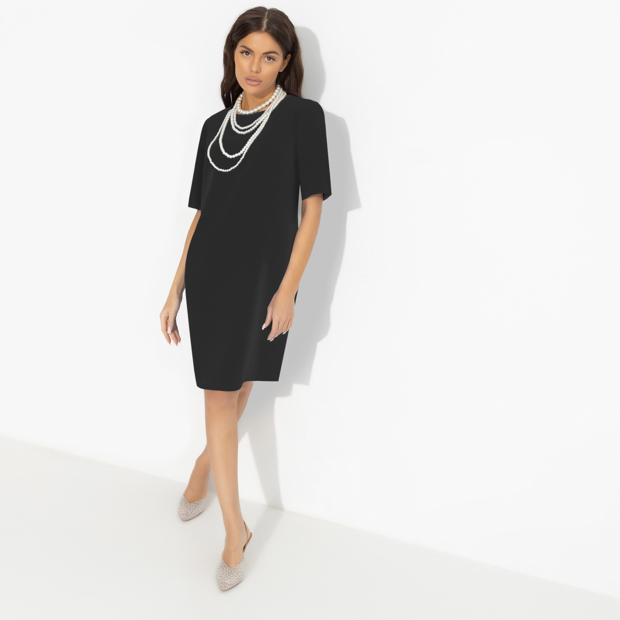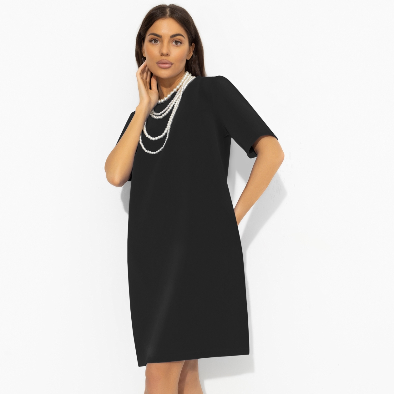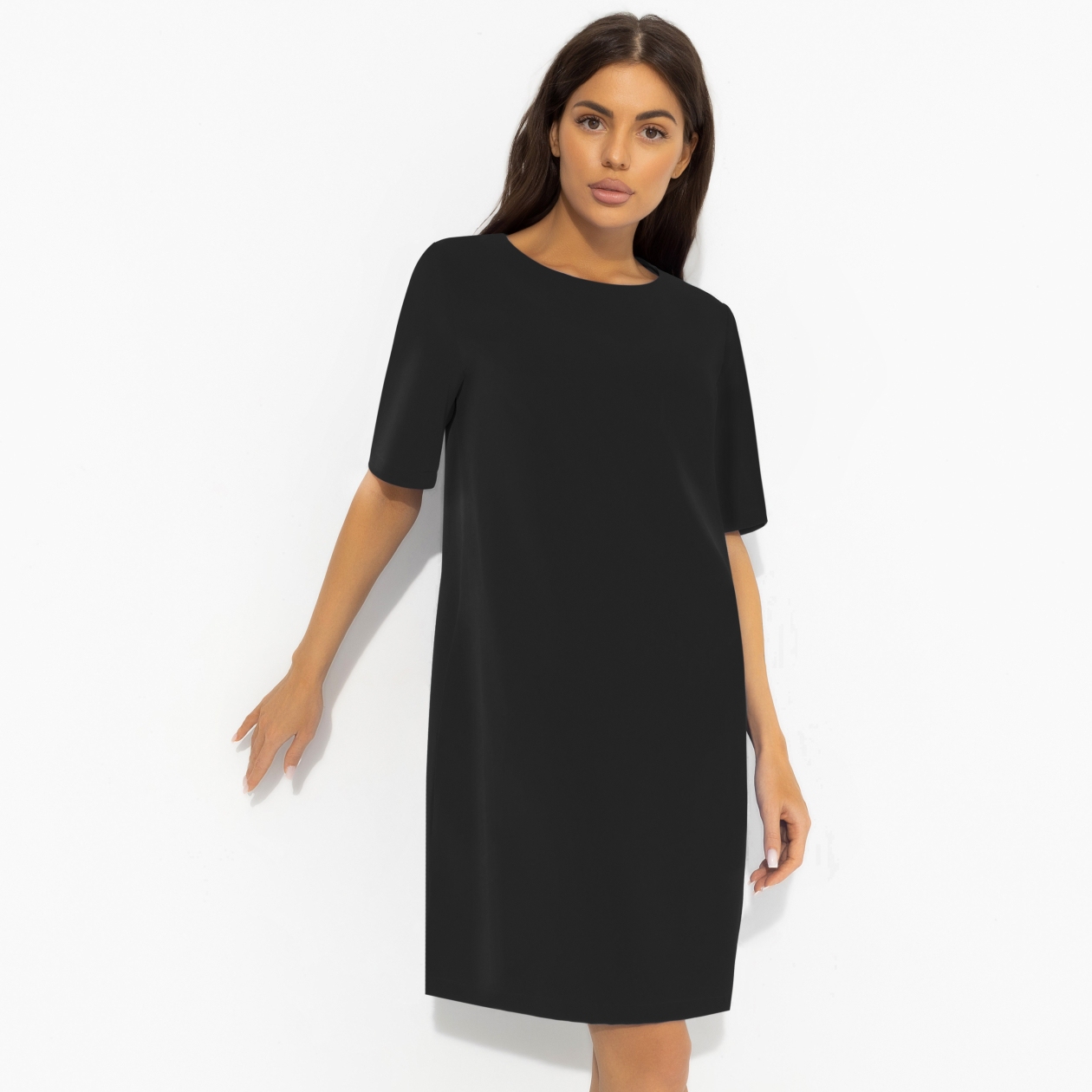 Маленькое черное платье, каким его видят дизайнеры CHARUTTI. С заботой о женщине, с уважением к моде. В современном прочтении платье удобное, стильное и удивительно подходящее к любым событиям жизни. Платье прямого кроя с карманами. Изделие хорошо смотрится на любом типе фигуры. Деликатные выточки в зоне груди.