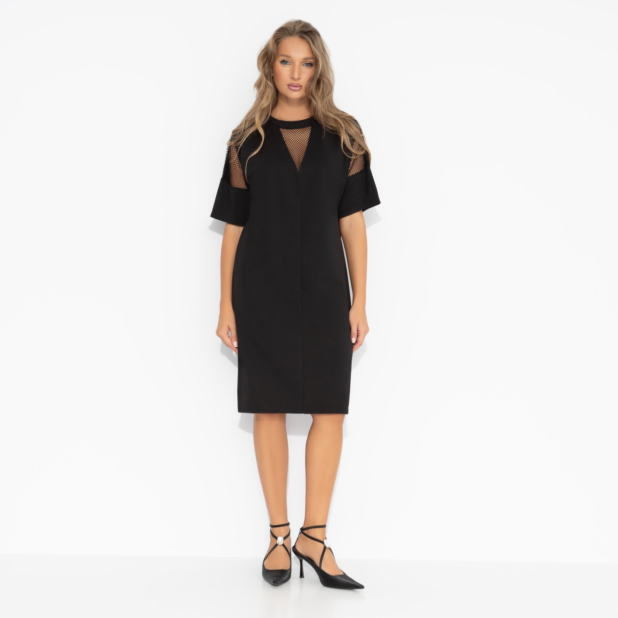 Правила созданы, чтобы их нарушать. Особенно – если это так стильно. Платье с сетчатыми акцентами играет на грани строгости и дерзости. Ничего лишнего – только уверенность, загадка и ты, готовая к новым историям этой осени. Платье прямого кроя без застежки.