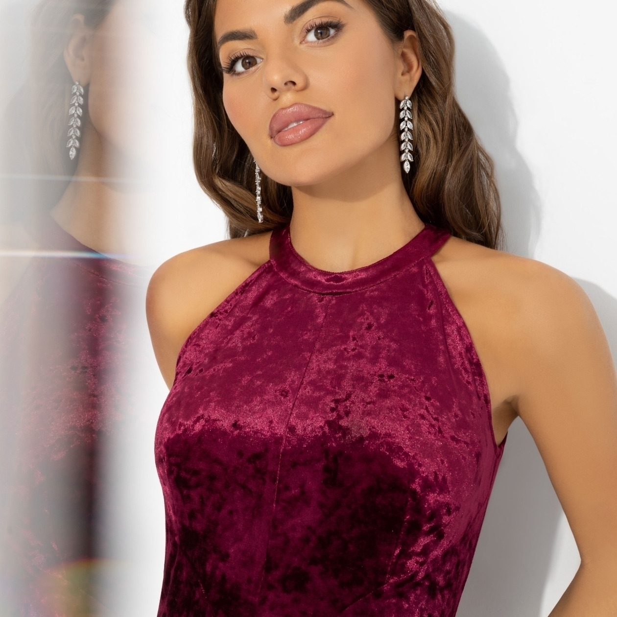 Хочешь повторить образ Зендеи с красной дорожки? Отличный выбор, ведь каждый ее выход воплощает уверенность, смелую элегантность и магию момента. Такое платье поможет тебе сформировать и поддерживать ауру селебрити, ведь бархатный блеск всегда в центре внимания. Бархатное платье струится по фигуре и эффектно играет на свету. Длина в пол добавляет драмы. Открытая спина равно сексуальность. Ты ‒ королева новогоднего вечера.