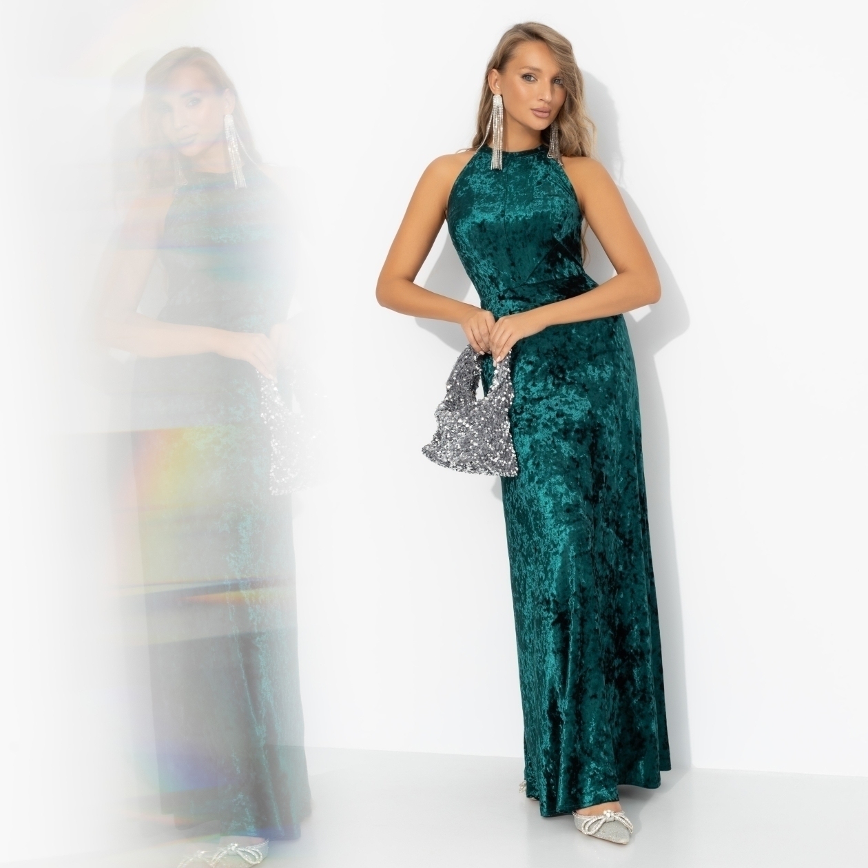 Лучший твой подарочек – это я. В роскошном бархатном платье под ёлкой на Новый год! Ярко, женственно, с настроением настоящей дивы. Чай с конфетами или уединенная встреча – решать тебе. Яркий аквамариновый бархат, облегающийй верх, длина макси. Материал мягко обнимает фигуру, сияет у новогодних огней. Идеально для главных моментов праздничной ночи.