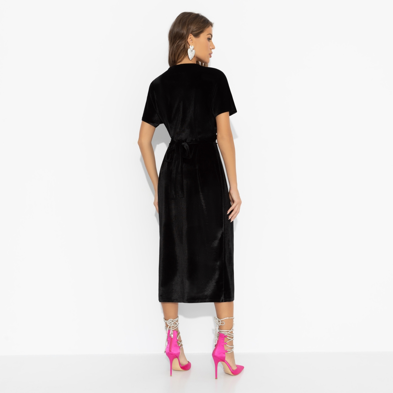 Back to black… Сегодня ты ‒ королева драмы. Эффектное черное платье ‒ как зявление. Я перевернула эту страницу, дальше двигаюсь в своем ритме. На фоне звучит пластинка Эми Уайнхаус, а ты больше не страдаешь по тому самому. Пришла его очередь. Роскошный бархат мягко облегает и струится при движении. Высокий разрез ‒ чтобы было удобно танцевать. Идеально для новогодней вечеринки.