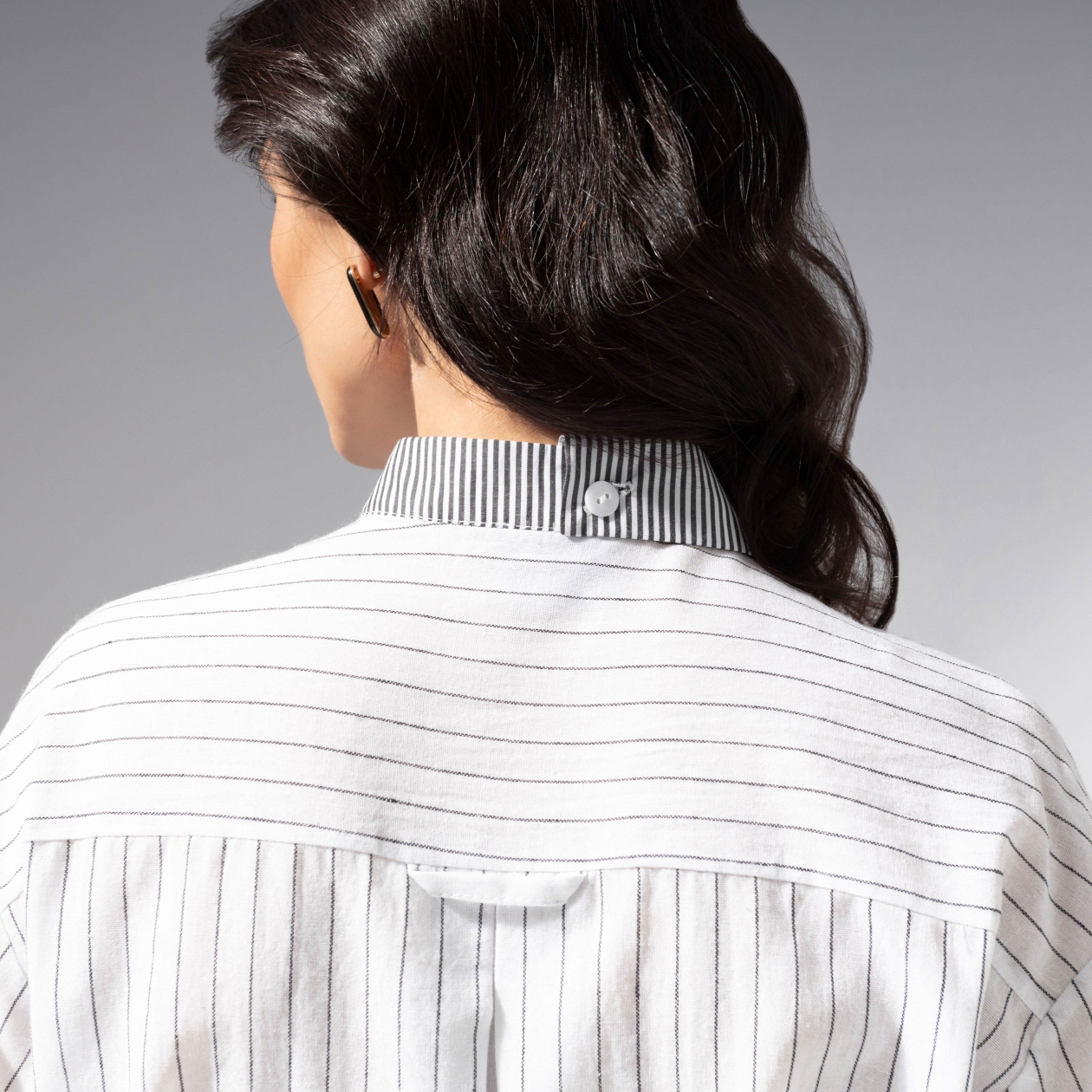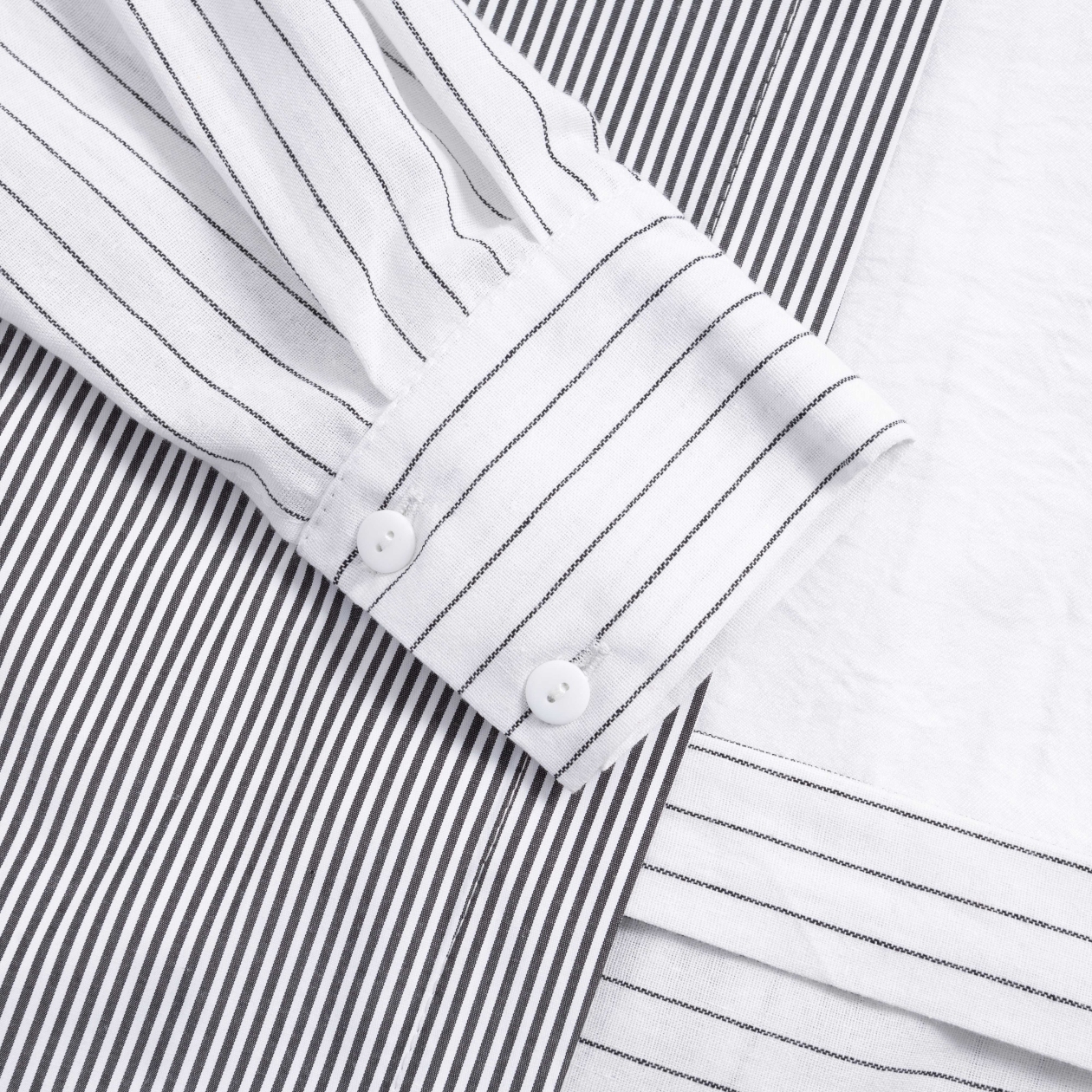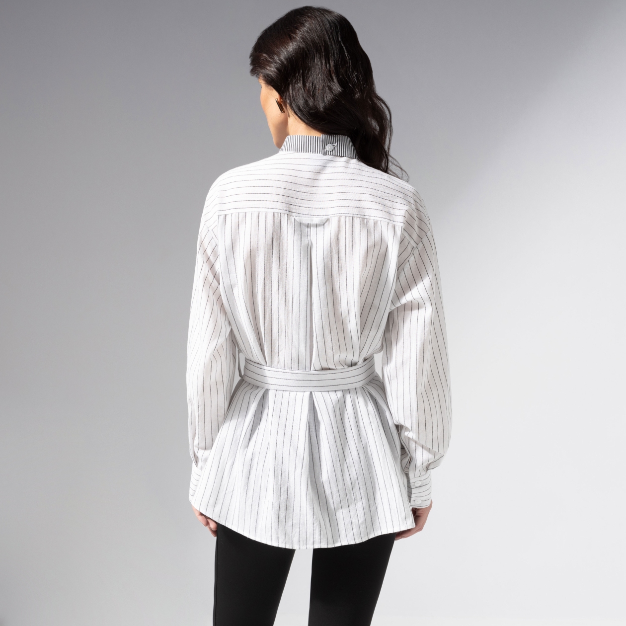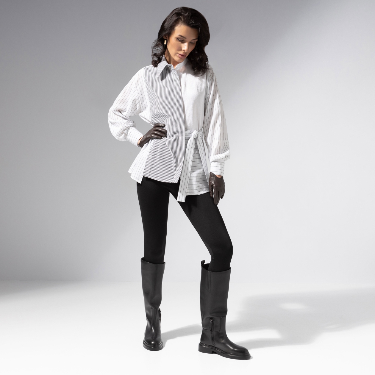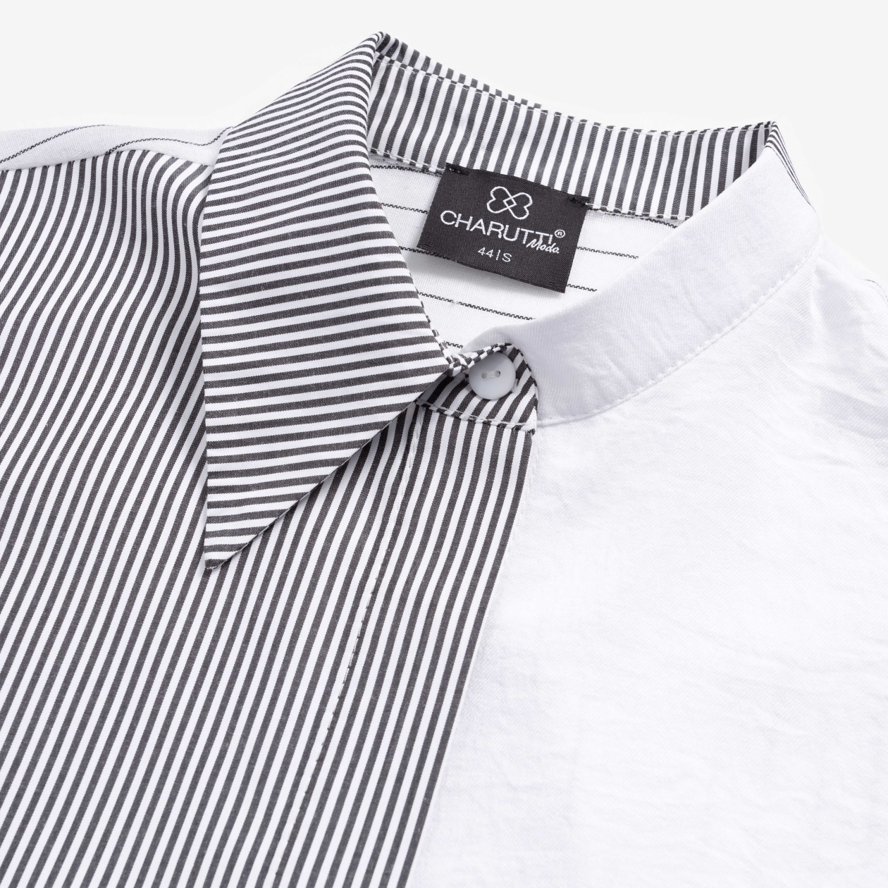 Стиль power dressing в утончённом исполнении. Рубашка ЧАРУТТИ будто соткана из уверенности и лёгкости. Контрастные полоски визуально вытягивают силуэт. Геометрия полос и безупречный крой превращают базовую вещь в модное высказывание. Двухфактурная рубашка с поясом. Свободный крой с акцентом на талию за счёт пояса. Длинный рукав, манжеты на пуговицах.