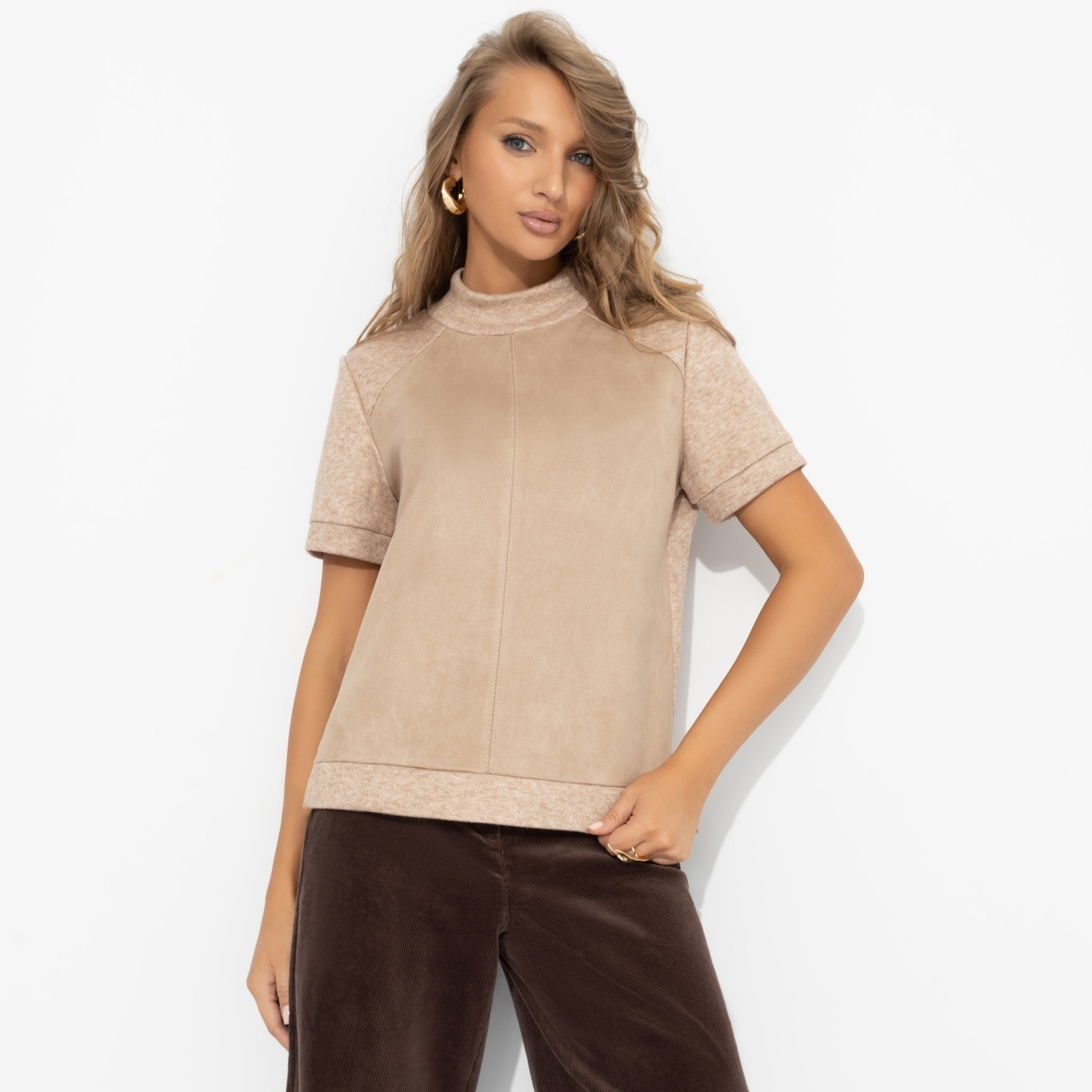 Межсезонняя классика – джемпер в стиле «уютный урбан». Плотный, но легкий трикотаж, уютный воротник и короткие рукава – для кофе с подругой и рабочего дня, когда важен комфорт без скуки. Беж и мягкая фактура делают образ расслабленным, а релакс – это именно то, что нам нужно в холодный сезон. Джемпер свободного кроя. Не требует сложного ухода, подходит для образов на каждый день.