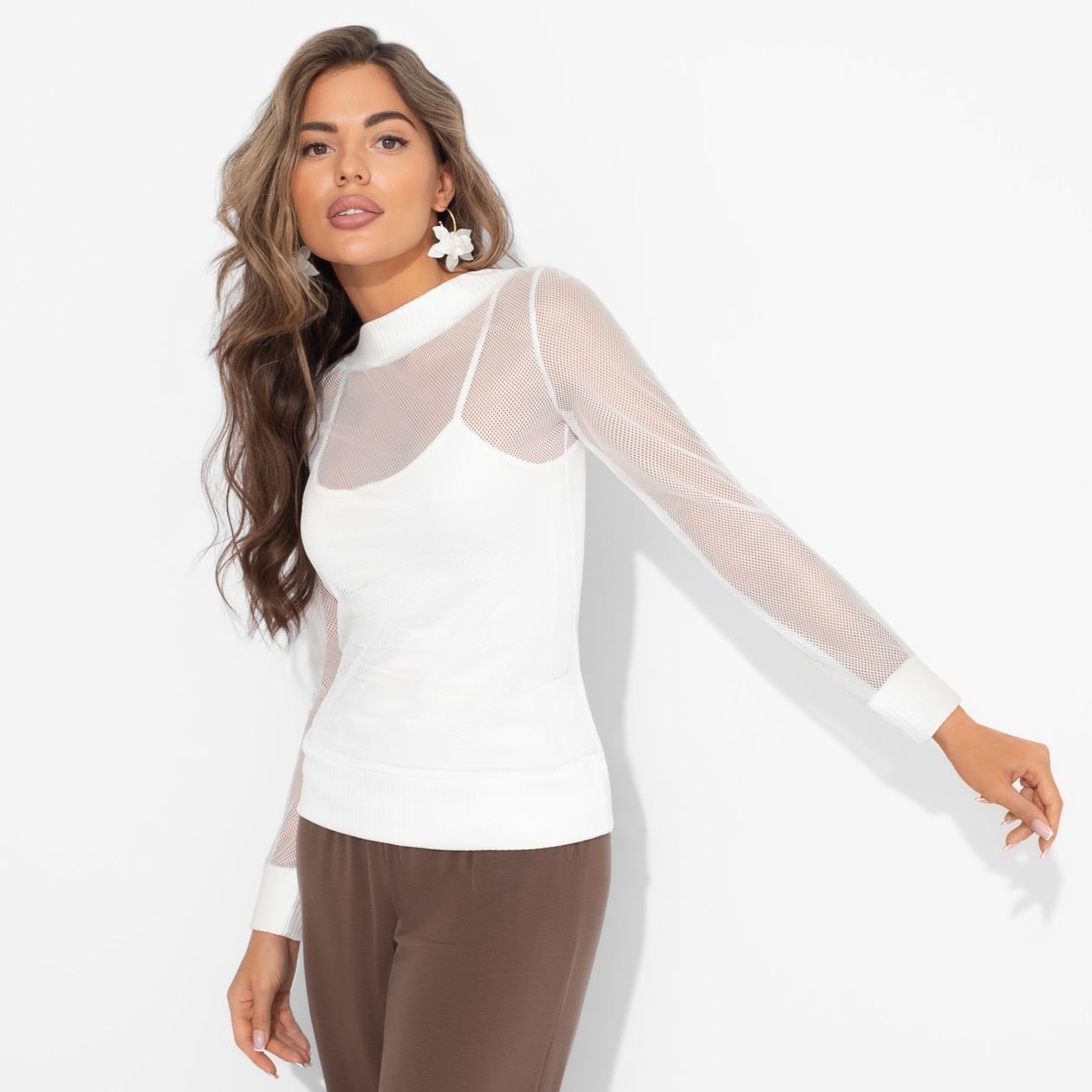 Лонгслив, который держит интригу дольше, чем любой роман. Невесомая сетка, безупречный белый, магия недосказанности – в нём вы управляете вниманием одним движением. Лонгслив из сетки, полупрозрачный. Нижний слой в комплекте не идёт.