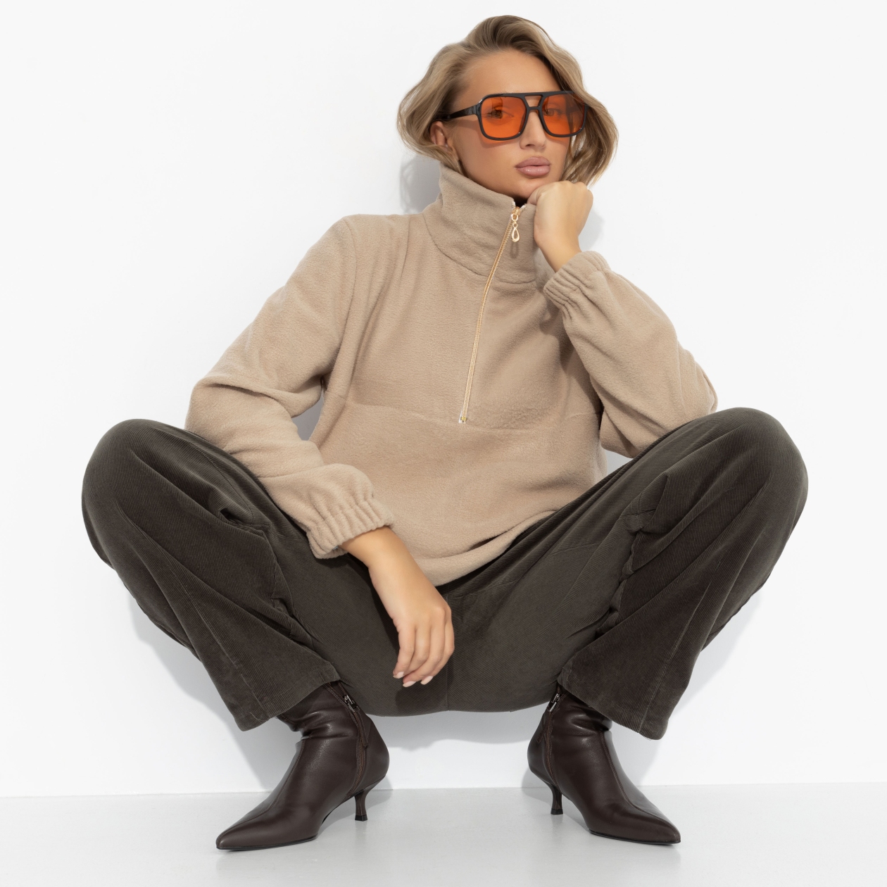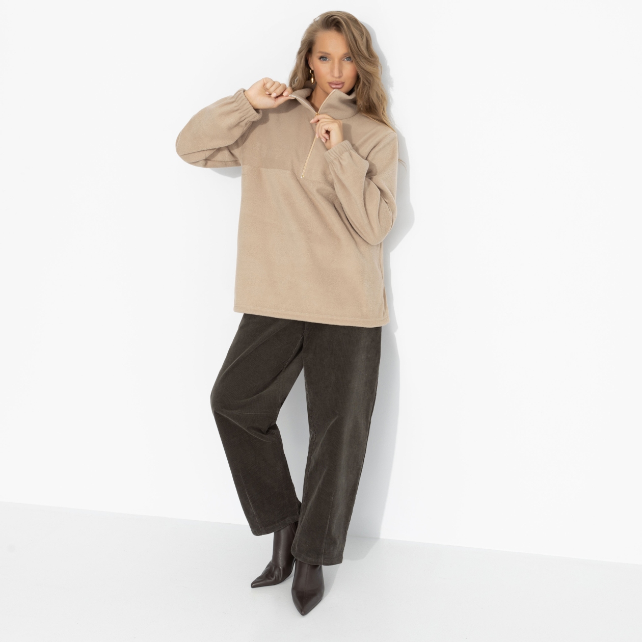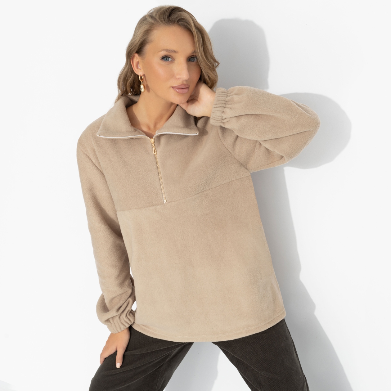 Пока другие кутаются в шарфы, она уже готова к переменам – с улыбкой, в уютном флисе и с чувством уверенности, что этот день будет тёплым во всех смыслах. Комфорт – её стиль, и в этом она всегда на шаг впереди. Свитшот из мягкого флиса с воротником-стойкой и короткой застёжкой-молнией. Приятная на ощупь ткань сохраняет тепло и форму, идеально подходит для прогулок, путешествий и городского отдыха.