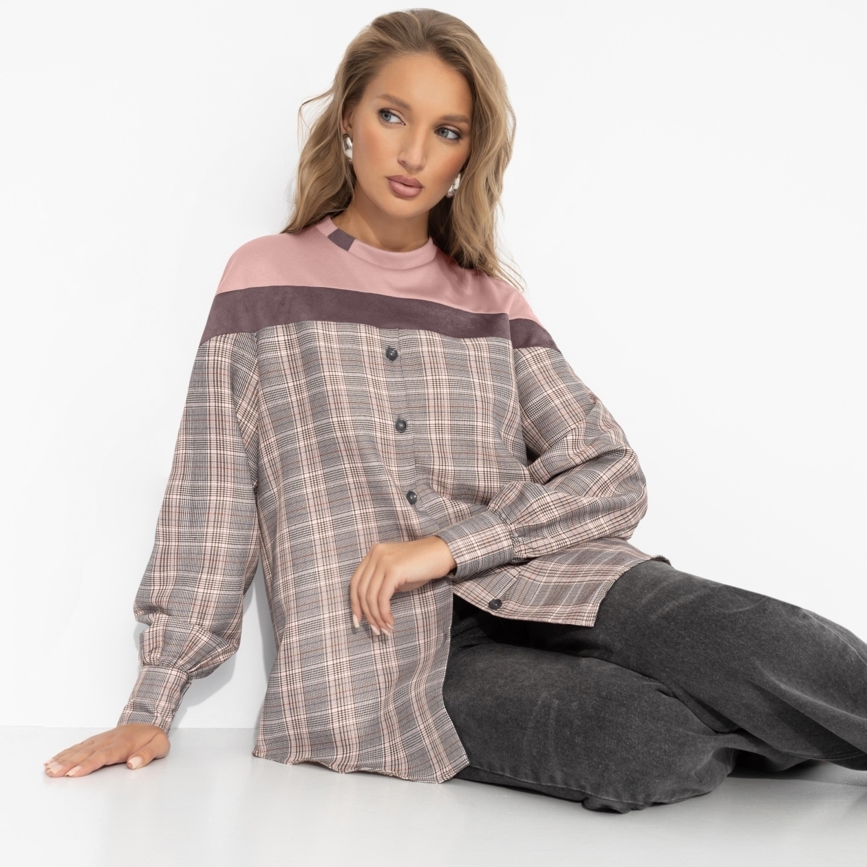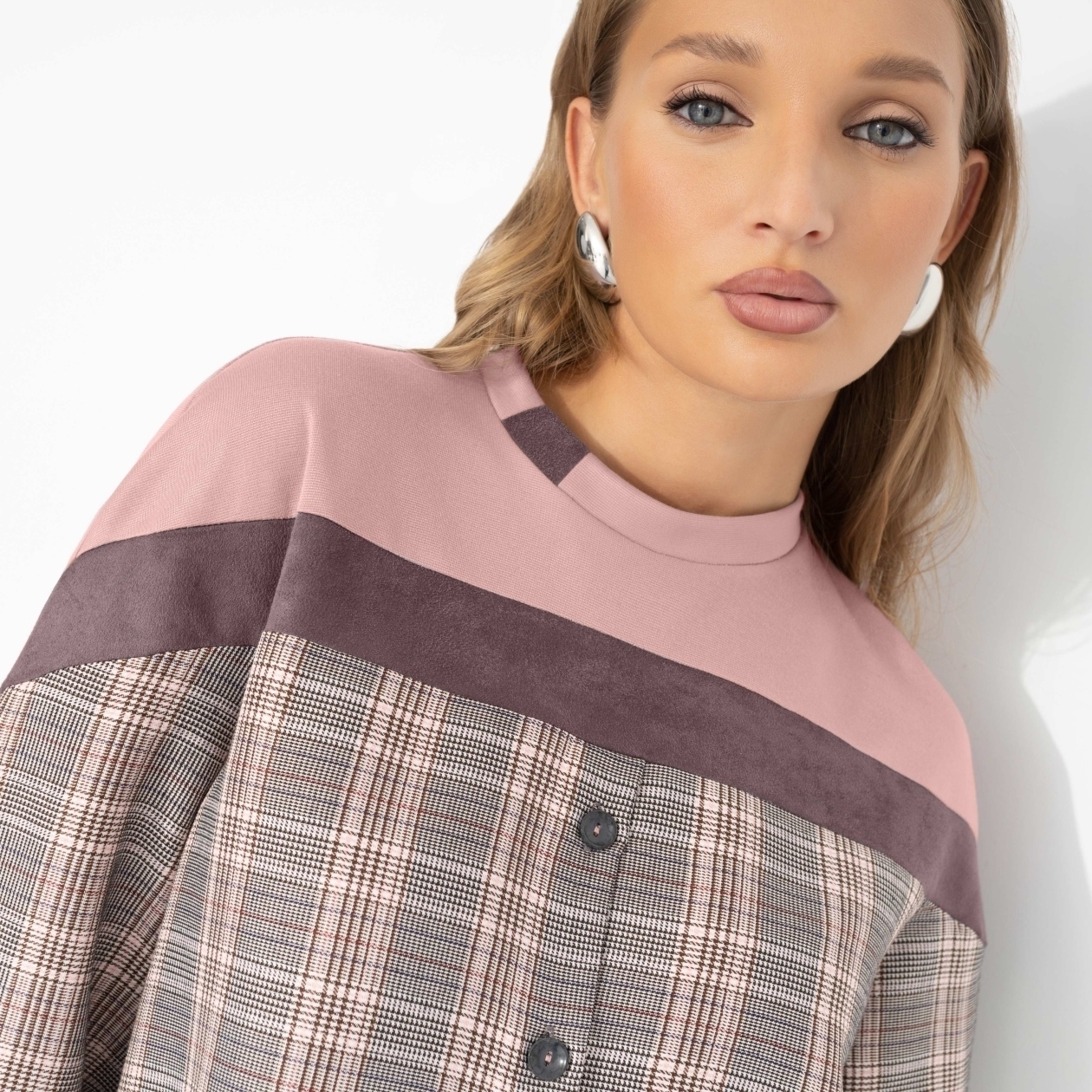 Хочу все и сразу! Мягкий трикотаж понтирома, акценты из эко-замши и клетчатая вставка придают свитшоту сложный, но гармоничный ритм. Просто будь собой – и день сложится идеально. Свитшот свободного кроя в комбинации нескольких видов ткани.