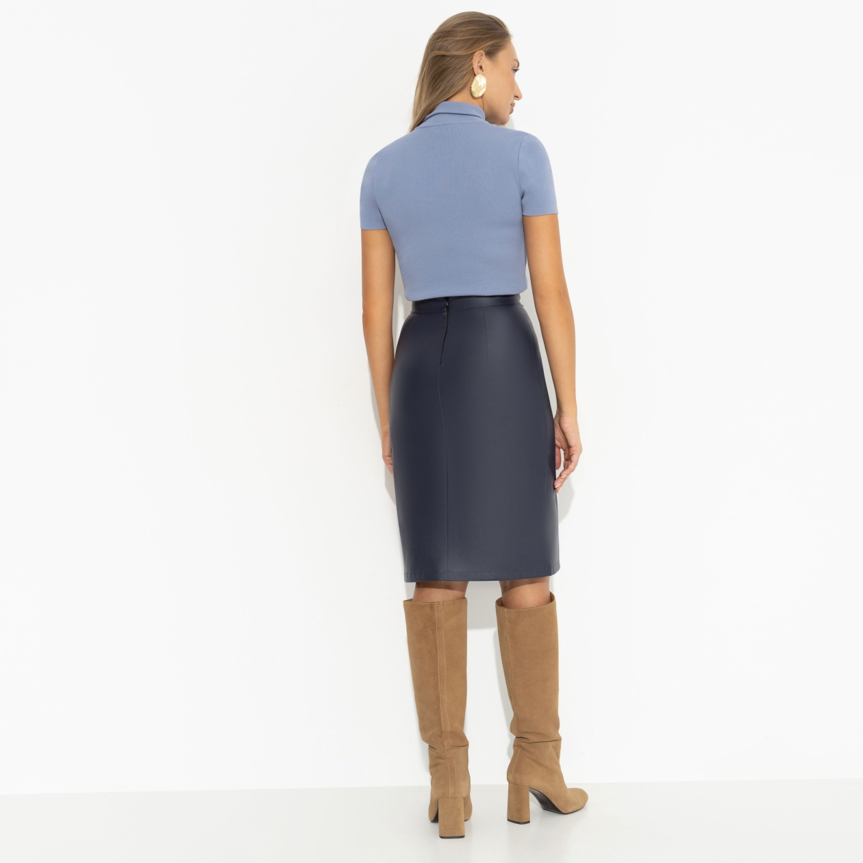 Он добрался до юбилейного десятого свидания с тобой. Наградой за его упорство, терпение и джентльменскую выдержку будет твой образ в юбке CHARUTTI. Это придаст ему сил, чтобы продолжить добиваться тебя. Юбка узкая из экокожи с посадкой на талии. Есть разрез. Застегивается на молнию по задней части изделия.