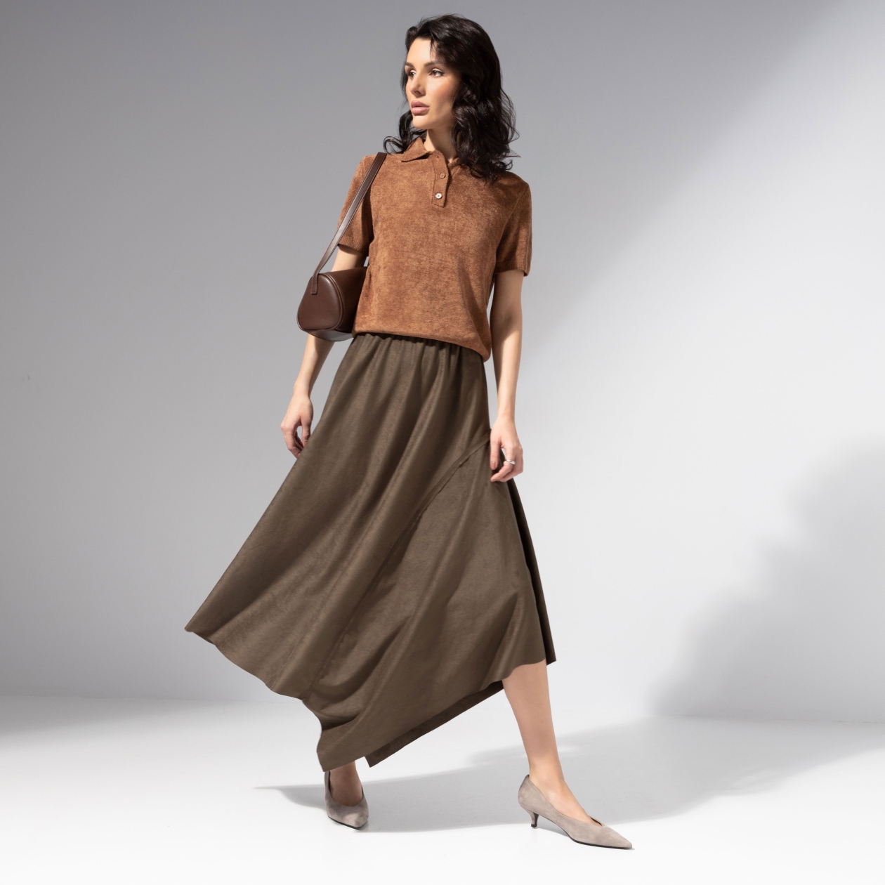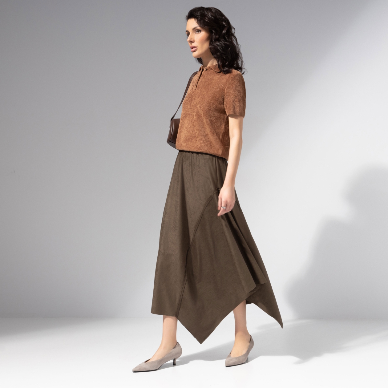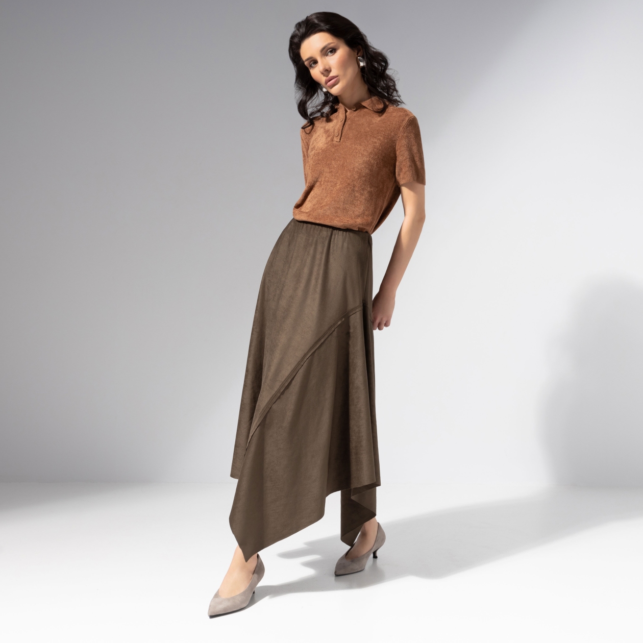 Осень любит мягкие линии и благородные фактуры. Юбка ЧАРУТТИ из нежной экозамши создана для тех, кто ценит тепло и стиль одновременно. Классика, которая никогда не выходит из моды. Юбка миди из премиальной экозамши. Эластичный пояс на скрытой резинке обеспечивает комфортную посадку. Асимметричный крой визуально вытягивает силуэт. Акцентные декоративные швы.