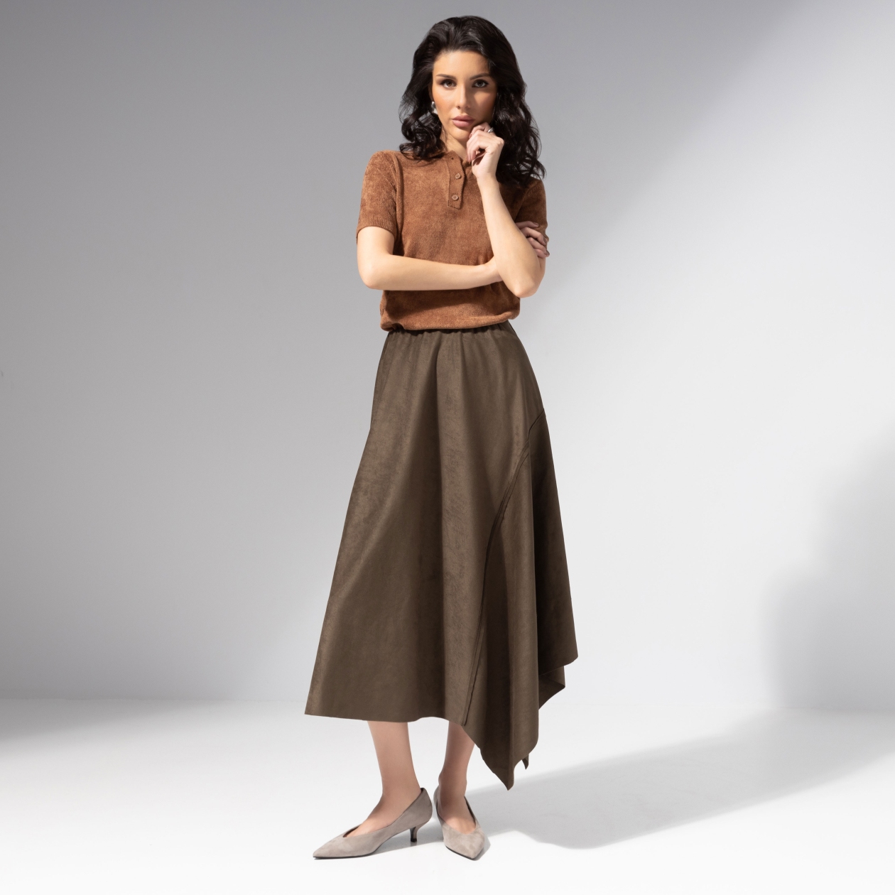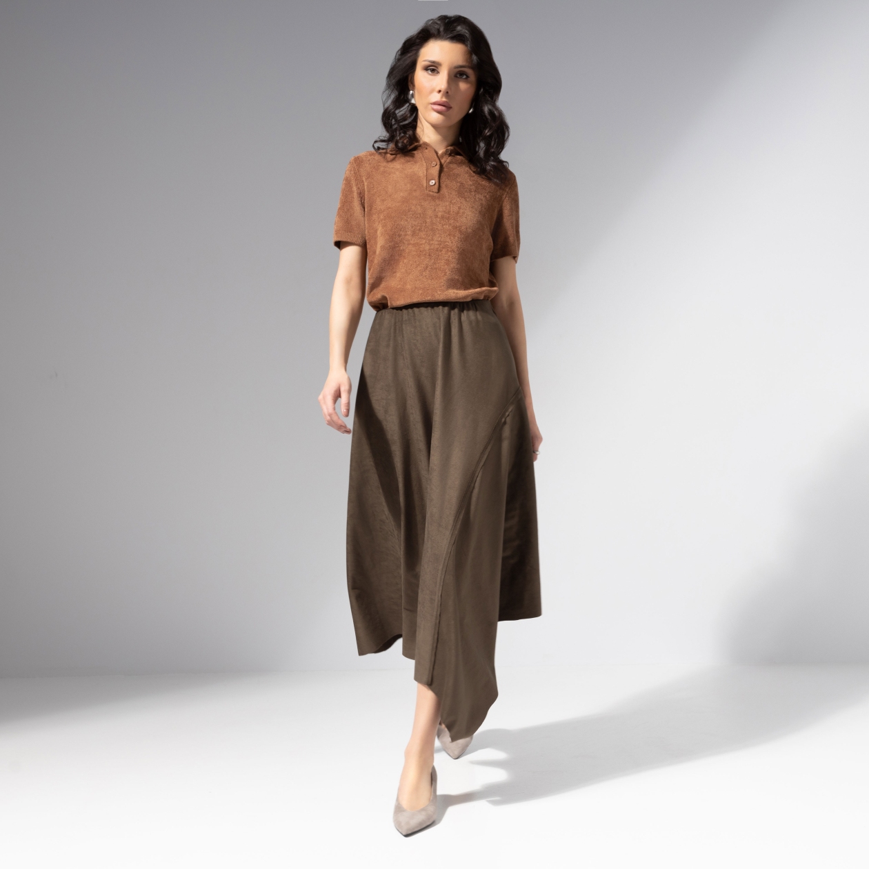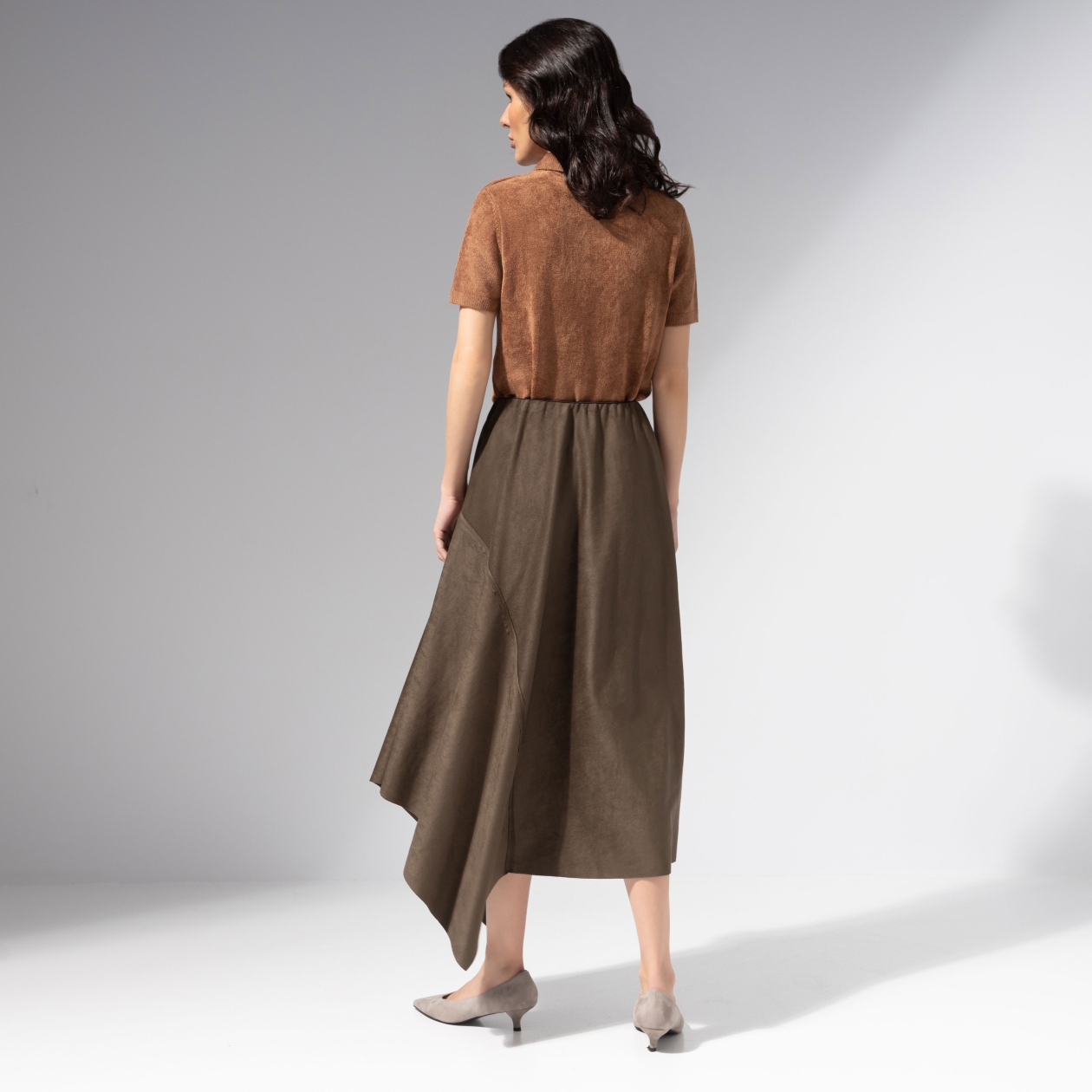 Осень любит мягкие линии и благородные фактуры. Юбка ЧАРУТТИ из нежной экозамши создана для тех, кто ценит тепло и стиль одновременно. Классика, которая никогда не выходит из моды. Юбка миди из премиальной экозамши. Эластичный пояс на скрытой резинке обеспечивает комфортную посадку. Асимметричный крой визуально вытягивает силуэт. Акцентные декоративные швы.