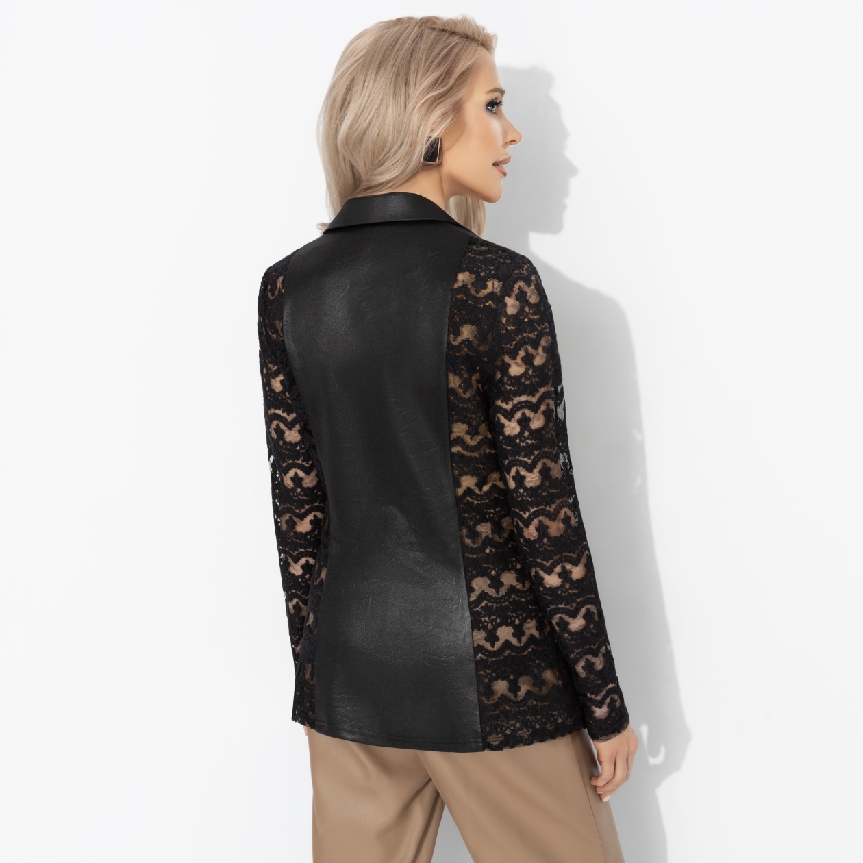 В эту ночь взгляды притягивает только она – женщина-кошка ЧАРУТТИ. Коготков не видно, но каждый шаг оставляет след в чужой памяти. Сила и загадка переплетены в танце света и тени. Не удержаться. Кто рискнёт приблизиться? Ультрамодный жакет из трикотажа «джерси кожа» и вышитой сетки – дерзкий микс женственности и собственных правил. Приталенный, с выразительными лацканами, подчёркивает идеальную осанку и свободу движений. Для красоток, которые не привыкли скрывать свои желания и идти на компромиссы.