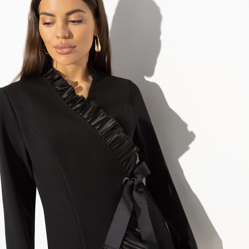- Стильный жакет с короткими рукавами — отличное решение на лето и весну. Невероятно женственно и красиво. Не перегружает образ, подчеркивает утонченность и вкус.