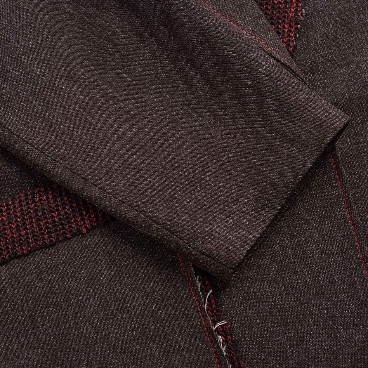 Состав: Костюмная ткань «тиар», трикотаж «меланж», «плат кагзи» (65% п/э, 30% вискоза, 5% спандекс)
